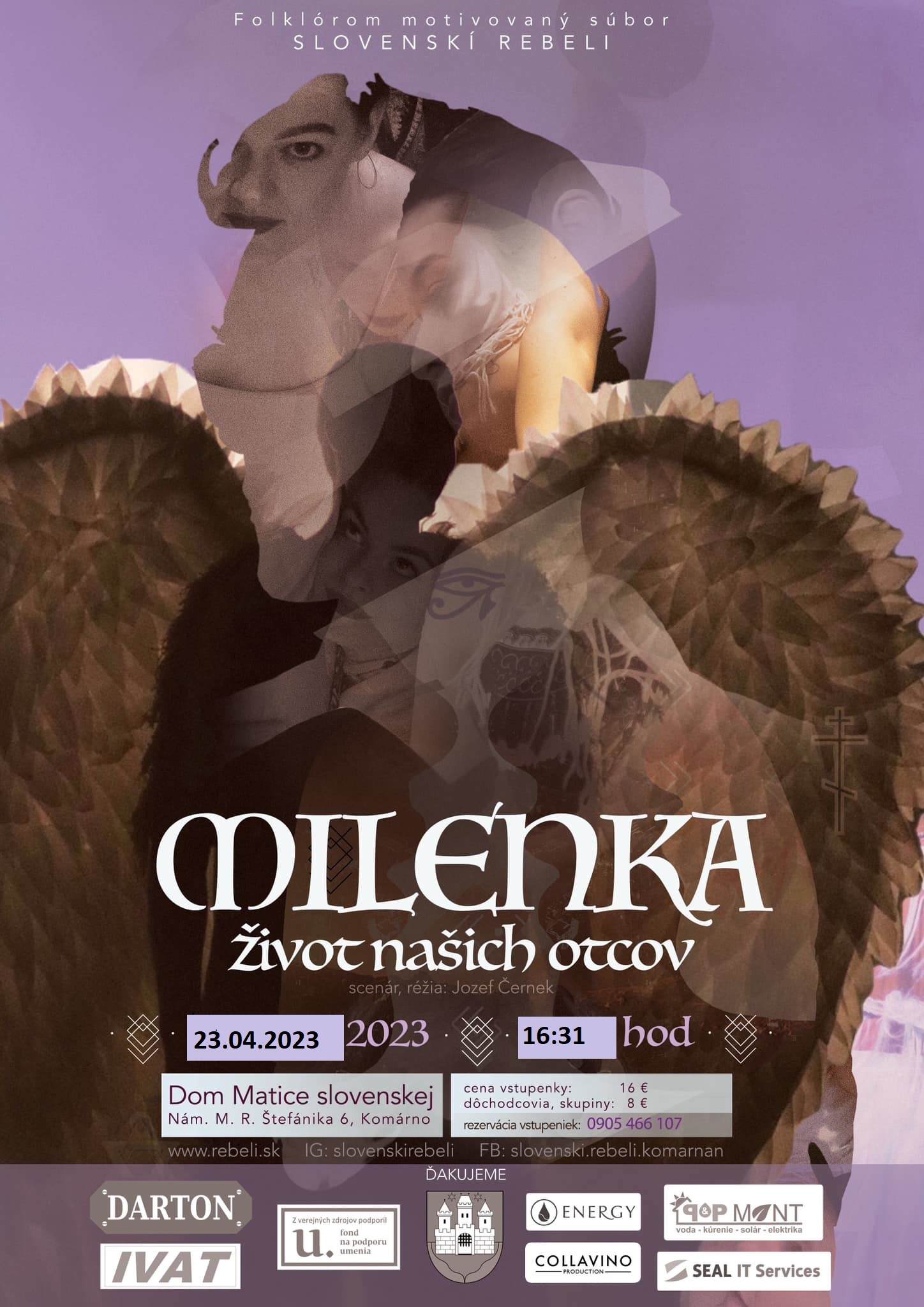 23. apríl MILENKA (REBELI) 16:31 DMS Komárno – cena: 16 €, dôchodcovia, skupiny: 8 € Vstupenky: 0905 466 107